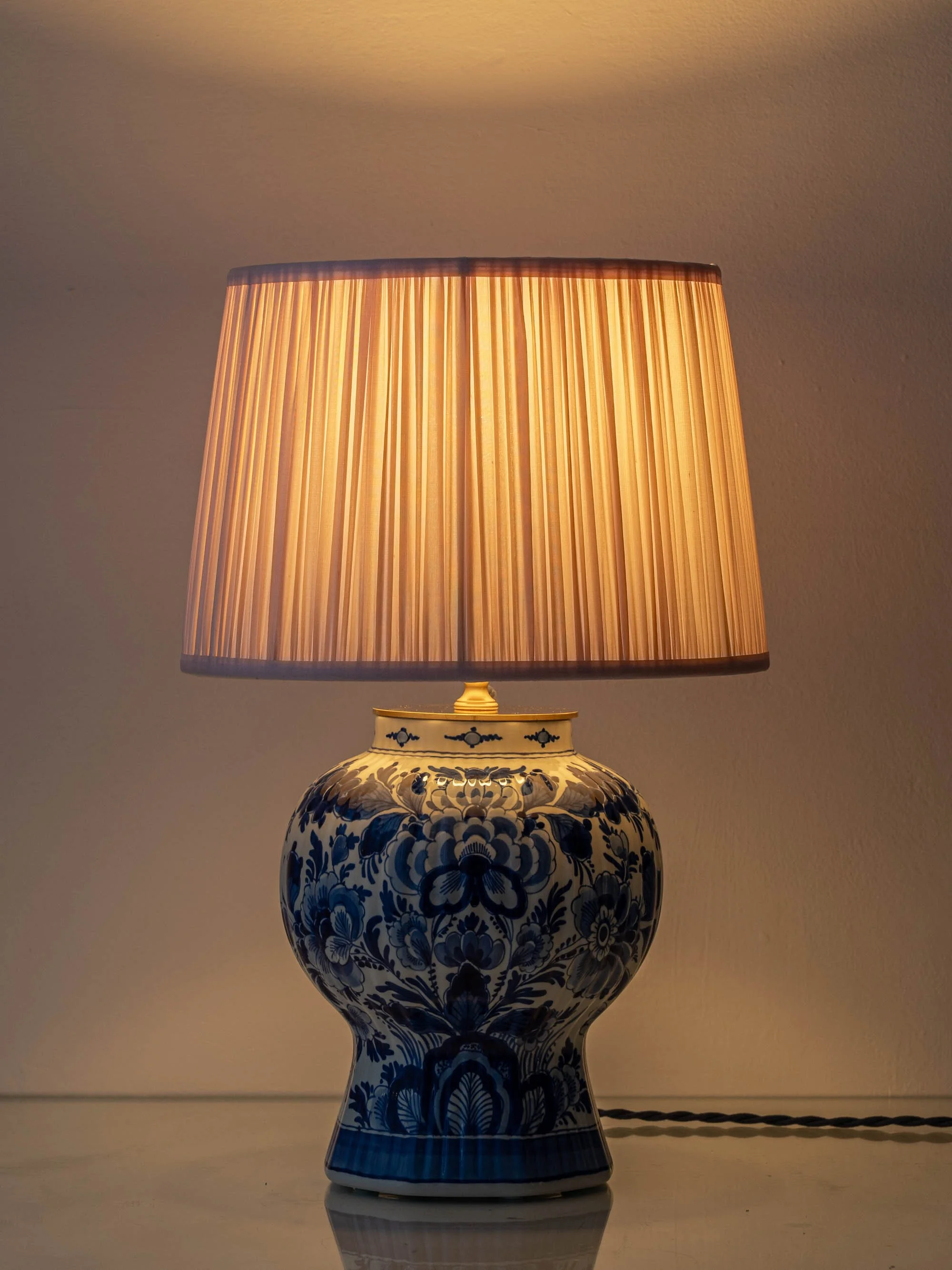 Delft is a signature part of our collection, but we also work with antique and vintage ceramics from across Europe — including other Dutch and Belgian makers (like Gouda and Boch Frères Keramis), plus French faïence, Italian maiolica, and now including Spanish traditions such as Manises (Valencia), Talavera (Castilla-La Mancha), and Catalan ceramics. Each lamp is crafted from carefully sourced historic ceramics.